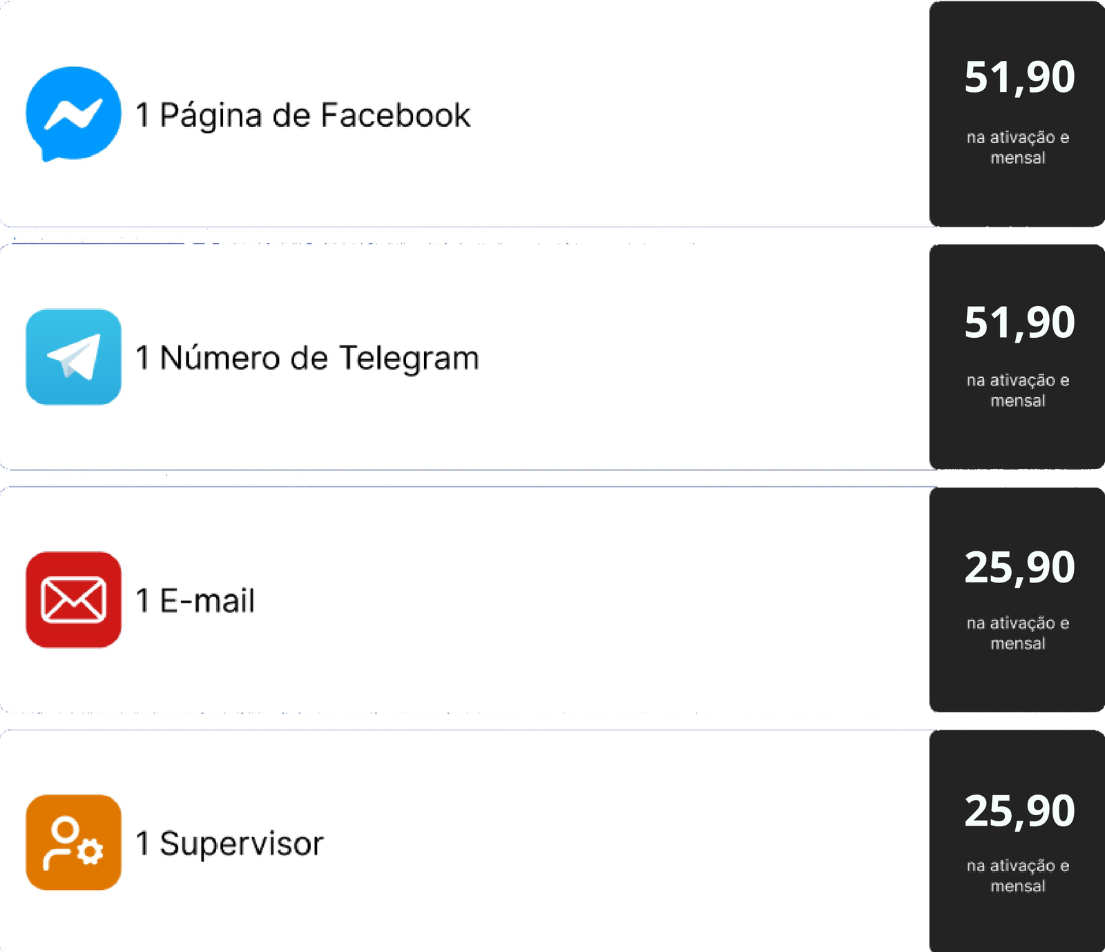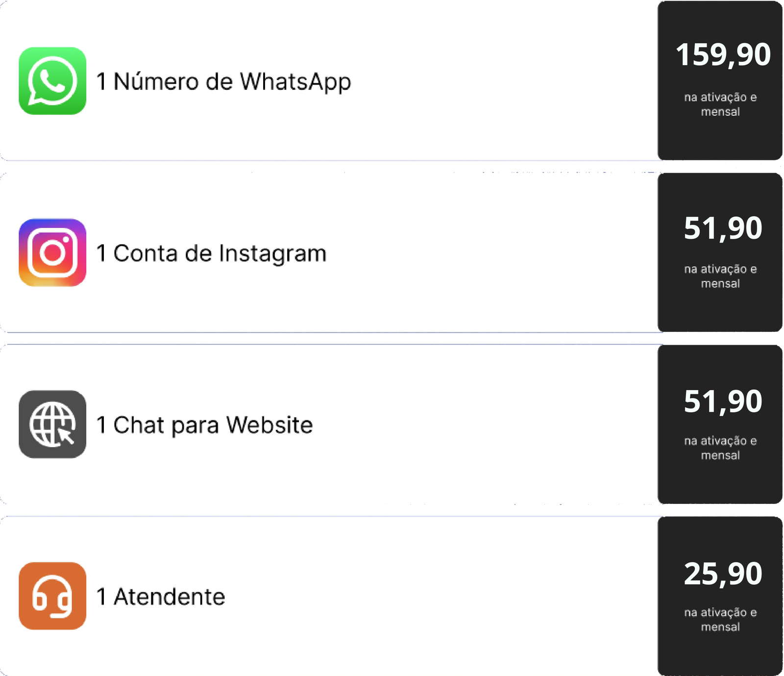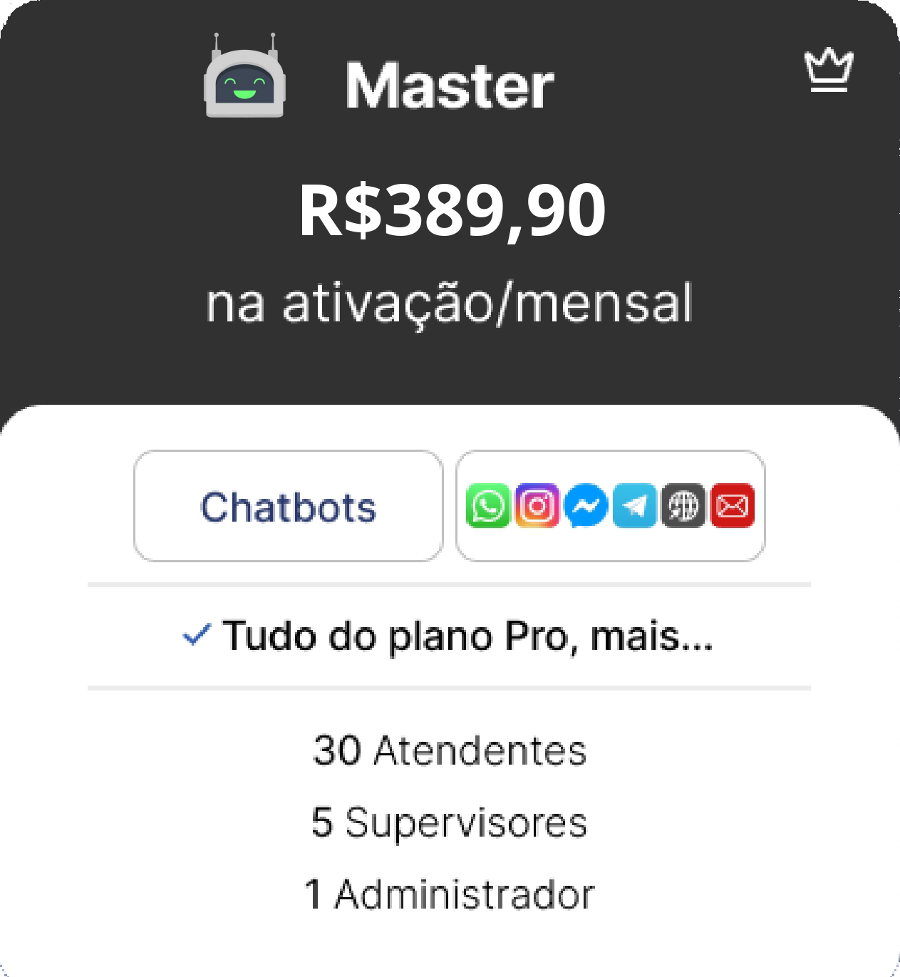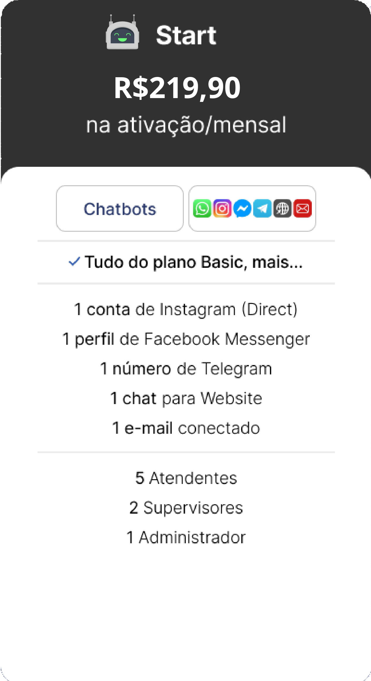 OBS.: TODOS OS CUSTOS REFERENTES A COBRANÇAS FEITAS PELA API OFICIAL DA META SÃO DE TOTAL RESPONSABILIDADE DO CONTRATANTE E SÃO NECESSÁRIAS PARA A ATIVAÇÃO DAS FUNCIONALIDADES DO CHATBOT. A ATIVAÇÃO DA JADE IA REQUER TOKEN (CHATGPT OU COPILOT) FORNECIDO PELO CLIENTE.